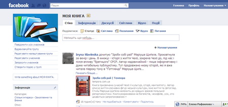 У соціальній мережі Facebook засновано групу «Моя книга». У ній читачі обговорюють прочитані книжки та діляться враженнями від новинок.
