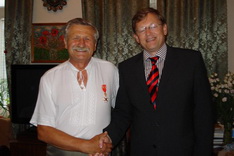 Надзвичайний і Повноважний Посол Латвійської Республіки в Україні Атіс С´янітс привітав відомого українського письменника і перекладача Юрія Завгороднього із сімдесятирічним ювілеєм та вручив йому високу нагороду своєї держави – «Хрест визнання».