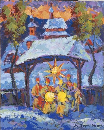 Галерея «АВС-арт» долучається до цієї настроєвості тематичною виставкою живопису й графіки. Традиційно в нашій колекції – класичне та сучасне українське мистецтво, представлене різними поколіннями, школами й напрямками. На противагу вже усталеному пейзажному жанру, який репрезентує зимову тематику чи не найбільше, дещо переакцентуємо візію, обравши нестандартні творчі вирішення: символ – алегорія, побутова сценка – дійство, інтер’єр – натюрморт. І – як наскрізний образ – сакральна архітектура.