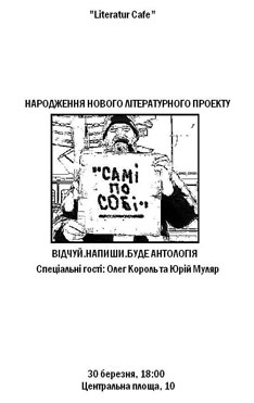 30 березня о 18:00 в «Literatur Cafe» КМЦ «Українська Книга» (Центральна площа, 10) відбудеться народження нового літературного проекту.