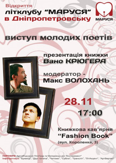 У неділю, 28-го листопада, о 17.00 в дніпропетровському кафе «Fashion Book» (вул. Короленка, 3) відбудеться відкриття філії літклубу «Маруся».
