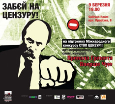 Сьогодні, 9 березня о 19.00 в клубі Sullivan Room (вул. Прорізна, 8) відбудеться арт-перформанс на підтримку Міжнародного конкурсу СТОП ЦЕНЗУРІ.
