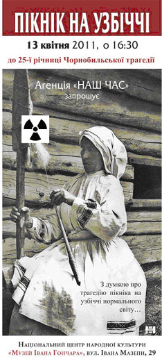 13 квітня о 16.30 в НЦНК «Музей Івана Гончара» (вул. І. Мазепи, 29) відбудеться творчий захід — «Пікнік на узбіччі», присвячений темі збереження традиційних культур у техногенному світі й 25-й річниці Чорнобильської трагедії.
