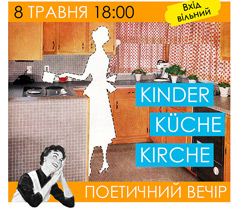 8 травня о 18.00 у фестиваль-ресторації «Диван» (пл. Бессарабська, 2) відбудеться поетичний вечір «Kinder, Küche, Kirche».