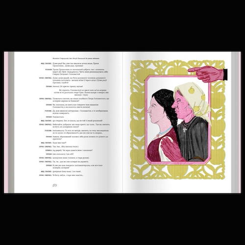 Театральна серія «Основ» — це колекція артбуків, що переосмислює класичні п´єси через візуальну режисуру. Нове видання проілюструвала Галя Вергелес, випускниця НАОМА. Її концепція ілюстрацій передає перехід від реалістичного твору Нечуя-Левицького до театрального, гротескного варіанту Старицького.