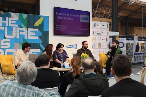 27 березня на локації Place à l’Europe відбулася публічна дискусія «Traduire le présent, défier le futur» («Перекласти теперішнє, кинути виклик майбутньому»). Участь у розмові взяли український письменник і ветеран Павло Матюша та грузинська журналістка і письменниця Тея Топурія. Модерував захід куратор програм та міжнародних проєктів Літературної платформи «Фронтера» Микита Москалюк. Співорганізаторами виступили: EUNIC Brussels, Український інститут книги, Літературна премія Європейського союзу, Польський інститут у Брюсселі, Літературна платформа «Фронтера», платформа «Алгоритм дій».