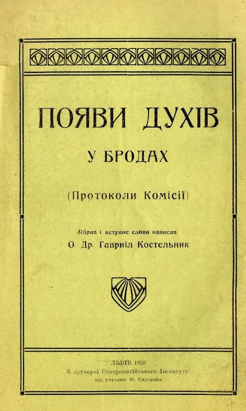 Отець Гавриїл Костельник. Появи духів у Бродах. Протоколи комісії. Передмова і переклад з польської: Віталій Щепанський. Видавництво Руслана Халікова, 2025. — 138 с., іл. Початкове видання: Львів, друкарня Ставропігійського Інституту, 1923.